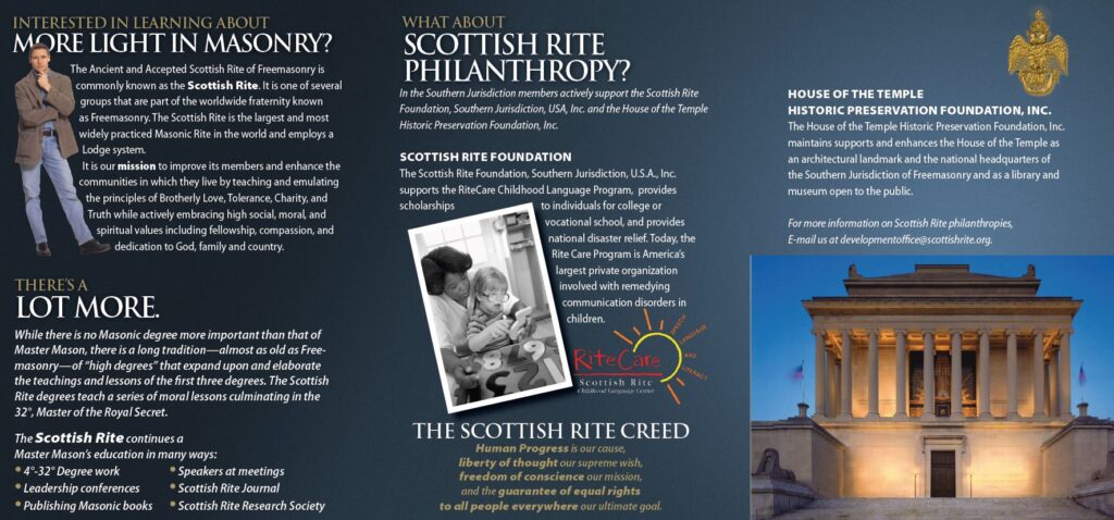 Membership in the Scottish Rite is an excellent opportunity to receive further education and lessons that expand upon the first three degrees of Masonry.